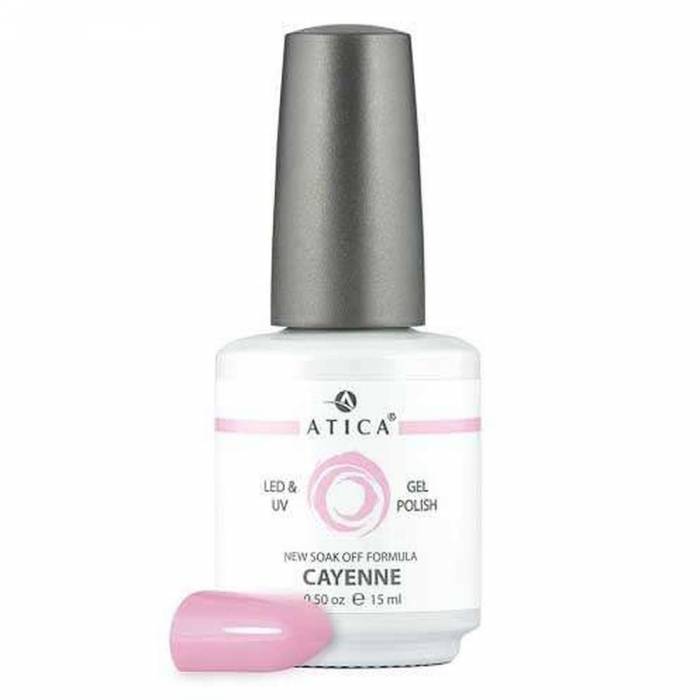 Гель лак Атіка, 15 мл. Створює еластичне покриття, що захищає та зміцнює нігтьову пластину. Відмінно носиться, не дає сколів та тріщин, має діамантовий блиск. Знімається рідиною для зняття гель лаків. Полімеризується в ЛЕД та УФ лампах